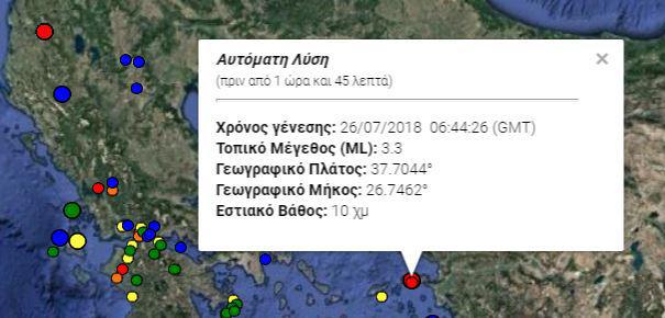 Ειδικότερα, το μέγεθος του σεισμού είναι στα 4,5 Ρίχτερ με επίκεντρο την παραλία Μαραθόκαμπου Σάμου.