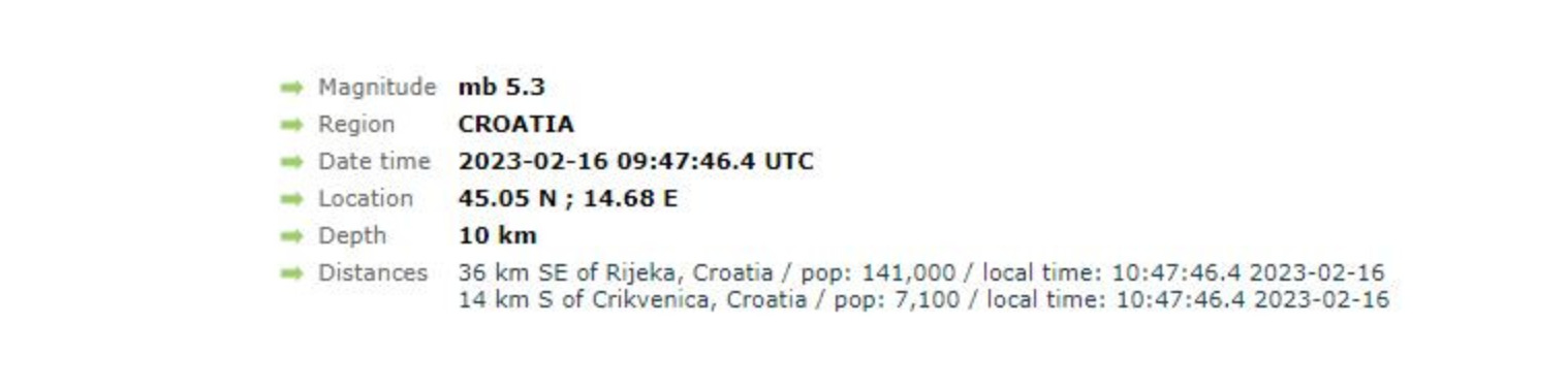 Το επίκεντρο ήταν 37 χλμ ΝοτιοΑνατιλικά της Ριέκα και είχε εστιακό βάθος 10χλμ