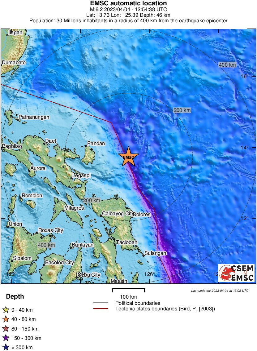 Σεισμός 6,2 Ρίχτερ σημειώθηκε στις 15.54 το μεσημέρι της Τρίτη στις Φιλιππίνες σύμφωνα με το Ευρωμεσογειακό Ινστιτούτο.