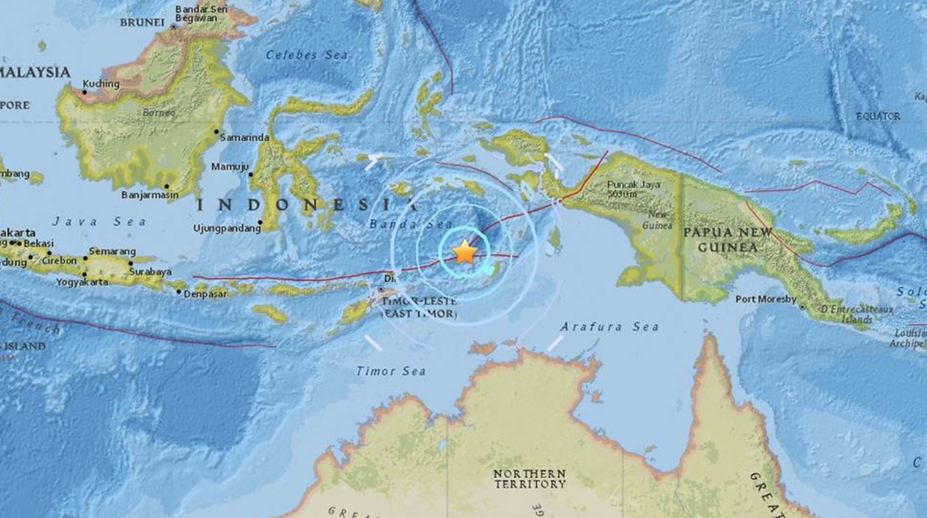 Ο σεισμός σημειώθηκε νωρίς το πρωί της Δευτέρας τοπική ώρα (στις 23:14 της Κυριακής, ώρα Ελλάδας) σε βάθος 171 χιλιομέτρων, στη θάλασσα Μπάντα, σύμφωνα με το αμερικανικό σεισμολογικό ινστιτούτο
