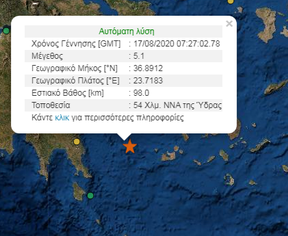 Σεισμός ανοιχτά της Ύδρας – Έγινε αισθητός μέχρι την Κρήτη
