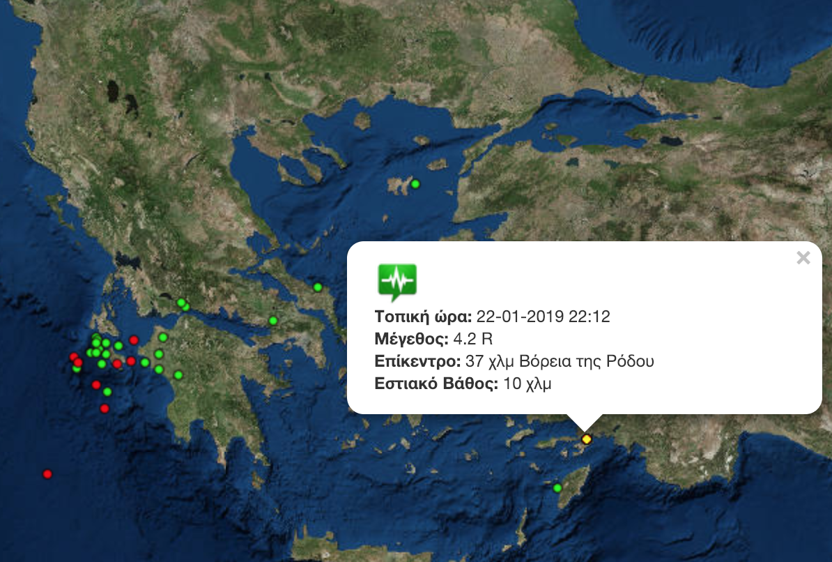 Σεισμική δόνηση έγινε ιδιαίτερα αισθητή στις 10 και 12 λεπτά στο νησί της Ρόδου.