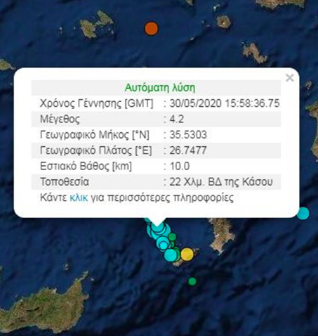 Υπενθυμίζουμε πως χθες είχε λάβει χώρα ακόμα ένας σεισμός 4,1 Ρίχτερ κοντά στο νησί της Κάσου.