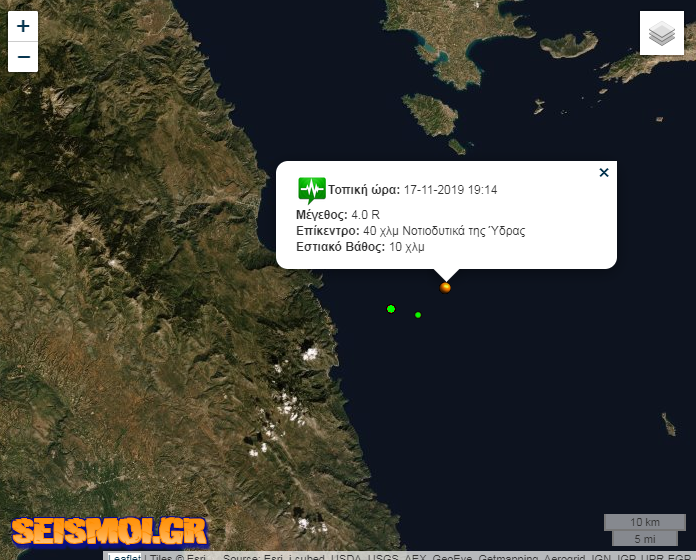 Το εστιακό βάθος ήταν 10 χλμ και το επίκεντρο 40 χλμ Νοτιοδυτικά της Ύδρας.