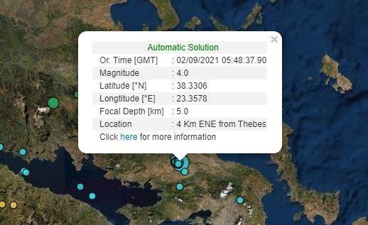 Σύμφωνα με το Γεωδυναμικό Ινστιτούτο, ο σεισμός είχε εστιακό βάθος 5 χιλιόμετρα και επίκεντρο 4 χιλιόμετρα Ανατολικά-Νοτιανατολικά της Θήβας.