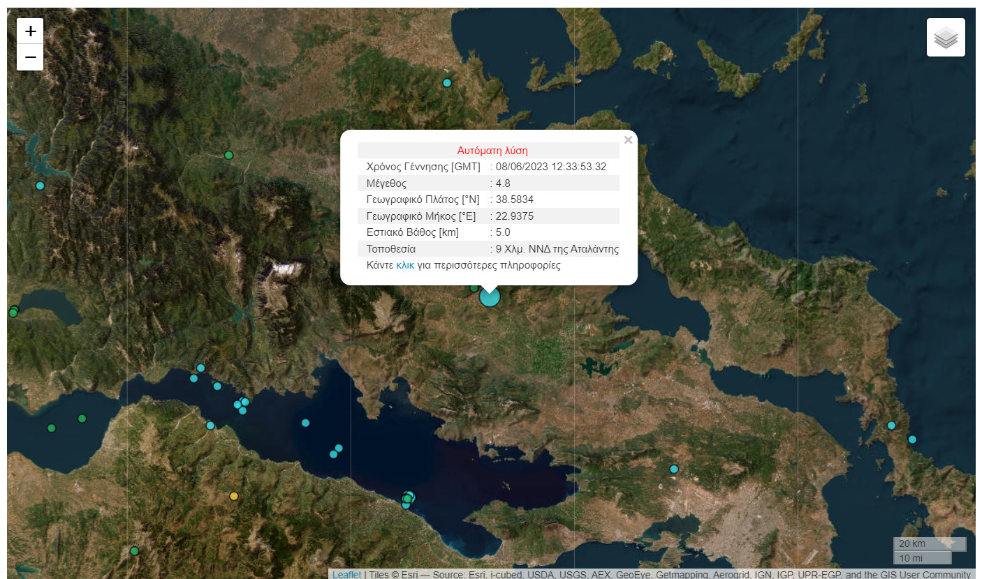 Σεισμός 4,8 Ρίχτερ σημειώθηκε στην Αταλάντη λίγο μετά τις 15:30 της Πέμπτης (8.6.2023) και έγινε έντονα αισθητός στην Αττική.