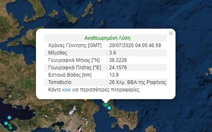 Το επίκεντρο εντοπίζεται 26 χλμ. βορειο-βορειοανατολικά της Ραφήνας.
