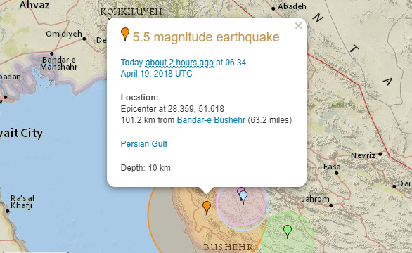 Το ημιεπίσημο πρακτορείο ειδήσεων Tasnim μετέδωσε ότι ο σεισμός έγινε αισθητός στο Μπαχρέιν και σε άλλες χώρες του Κόλπου.