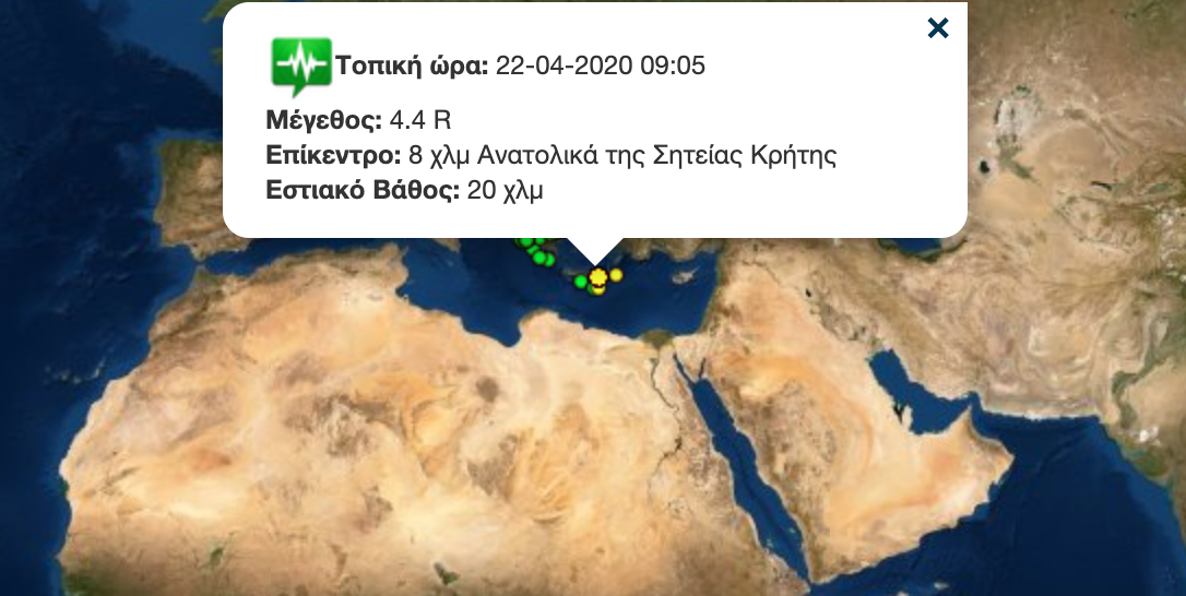Το επίκεντρο εντοπίζεται 8 χλμ. ανατολικά της Σητείας