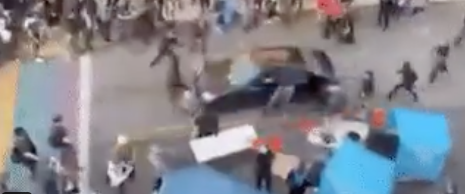 Το βίντεο του περιστατικού δείχνει ότι ο άντρας οδηγούσε με ταχύτητα στο πλήθος.Οι διαδηλωτές προσπάθησαν να τον στριμώξουν όταν έφτασε μέχρι το οδόφραγμα της Αστυνομίας και περικύκλωσαν το αυτοκίνητό του, χτυπώντας το και τότε ο δράστης πυροβόλησε έναν εξ αυτών.