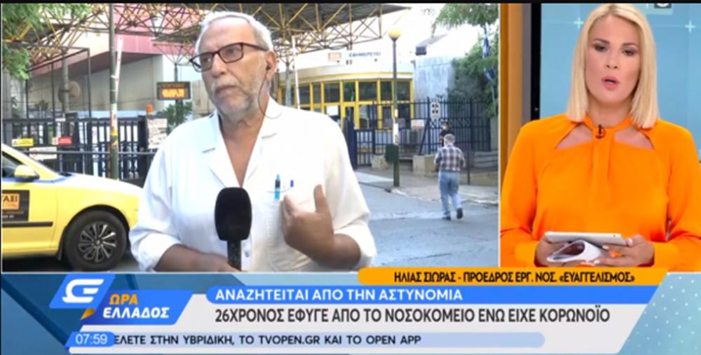 Καλεσμένος στην εκπομπή «Ώρα Ελλάδος» του OPEN TV, o πρόεδρος εργαζομένων του νοσοκομείου «Ευαγγελισμός», Ηλίας Σιώρας, σχολίασε το περιστατικό με τον 26χρονο που το έσκασε από το νοσοκομείο ενώ είναι θετικός στον κορονοϊό, ενώ έκανε και μια δήλωση που θα συζητηθεί, αναφέροντας πως «για τη διασπορά του ιού φταίνε τα πλουσιόπαιδα».