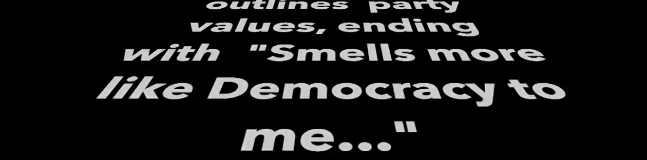 Το video χαρακτηρίζεται από την ασπρόμαυρη εικόνα, τις αργές κινήσεις, ενώ στο τέλος πιάνει ένα μπουκάλι με την ετικέτα «φασισμός» στα αγγλικά και ψεκάζεται. «Για εμένα, αυτό είναι το άρωμα της δημοκρατίας» αναφέρει. Θα μπορούσε να είναι διαφήμιση life style ενός οίκου μόδας. Έχει όλα τα χαρακτηριστικά. Class, λάμψη, στιλ. Και όμως. Διαφημίζει κάτι εξαιρετικά επικίνδυνο. Στο τέλος του σποτ λέει: Η δημοκρατία μυρίζει σαν το φασισμό…