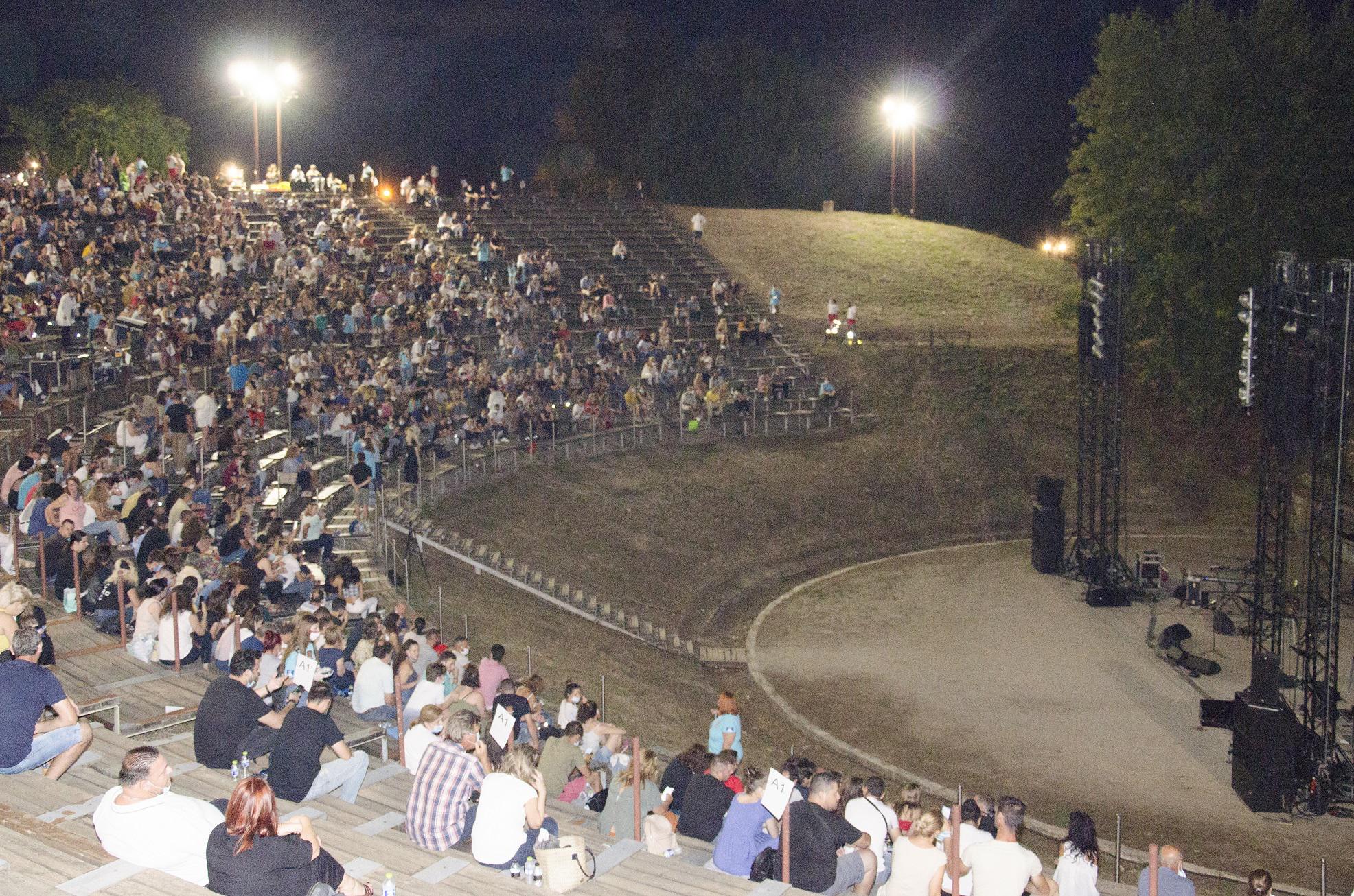 Χθες βράδυ, κατά τη διάρκεια συναυλίας στο Δίον της Πιερίας, οι θεατές κάθονται σε μικρές αποστάσεις και πολλοί δεν φορούν μάσκα, ως όφειλαν σύμφωνα με τα κυβερνητικά μέτρα. Και είναι πραγματικά κρίμα για όσους τηρούν τα μέτρα και για τον έλεγχο που γινόταν κατά την είσοδο και τη διάρκεια της συναυλίας από τους υπεύθυνους να μη συμμορφώνονται με την πρόθεση των διοργανωτών για ασφάλεια και προστασία τους. Κατά την είσοδο τους γινόταν θερμιδομέτρηση, διανομή μασκών και απολυμαντικού από τους οργανωτές κάποιοι όμως αποφάσισαν να μην φορέσουν τη μάσκα.