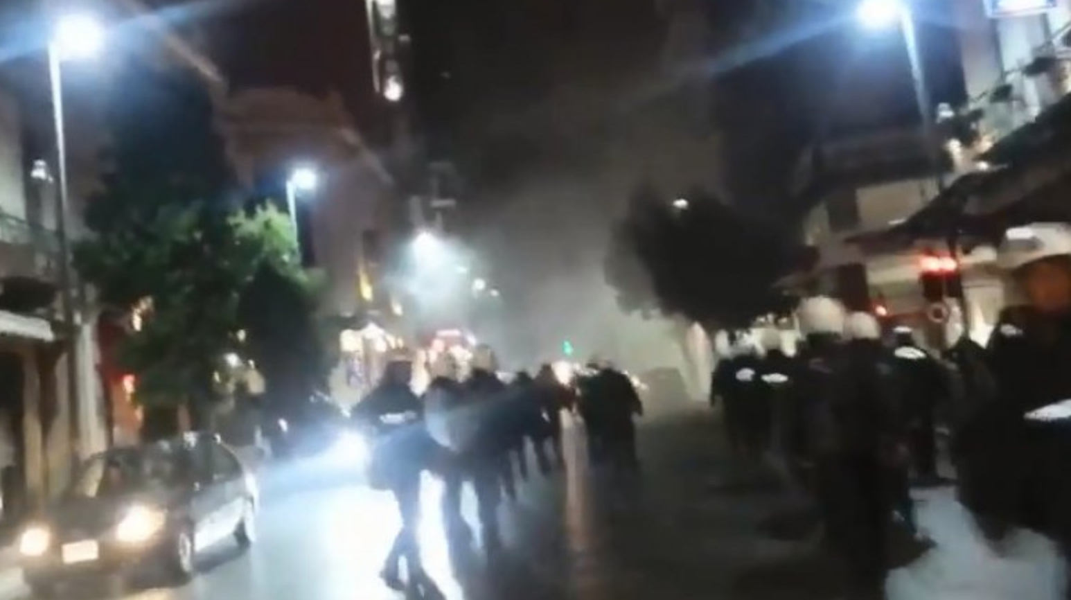 Ομάδα αντιεξουσιαστών, που βγήκε από το κτίριο του πρώην παραρτήματος του πανεπιστημίου, πέταξε βόμβες μολότοφ και έβαλε φωτιές σε κάδους απορριμμάτων και σε λάστιχα, επί της οδού Κορίνθου.