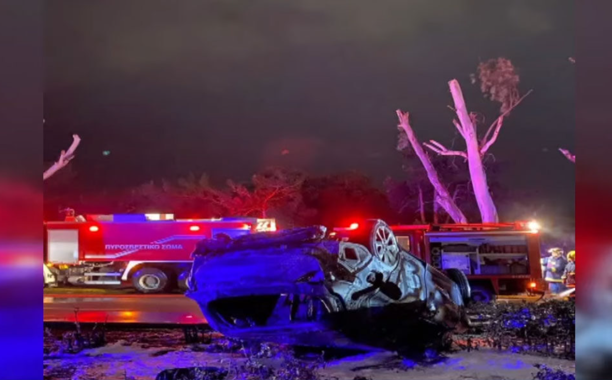 Σοβαρό τροχαίο στη Γλυφάδα: Αυτοκίνητο αναποδογύρισε και τυλίχθηκε στις φλόγες