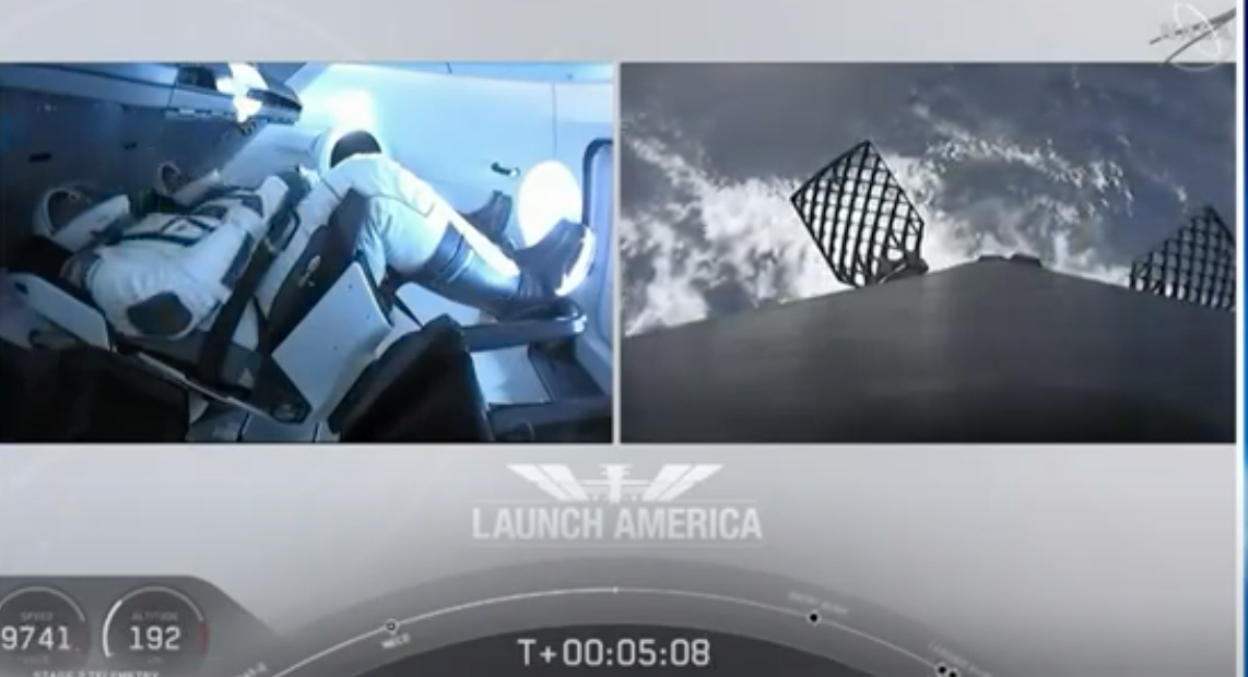 Οι δύο αστροναύτες της NASA που συμμετέχουν στην αποστολή έγραψαν ιστορία ως οι πρώτοι που εκτοξεύονται στο διάστημα επιβαίνοντες σε όχημα κατασκευασμένο από ιδωτική εταιρεία , την SpaceΧ του Ελον Μασκ. Λίγα λεπτά αργότερα η SpaceX ανακοίνωσε ότι το Dragon βρίσκεται στην σωστή τροχιά για να φθάσει στον ΔΔΣ.