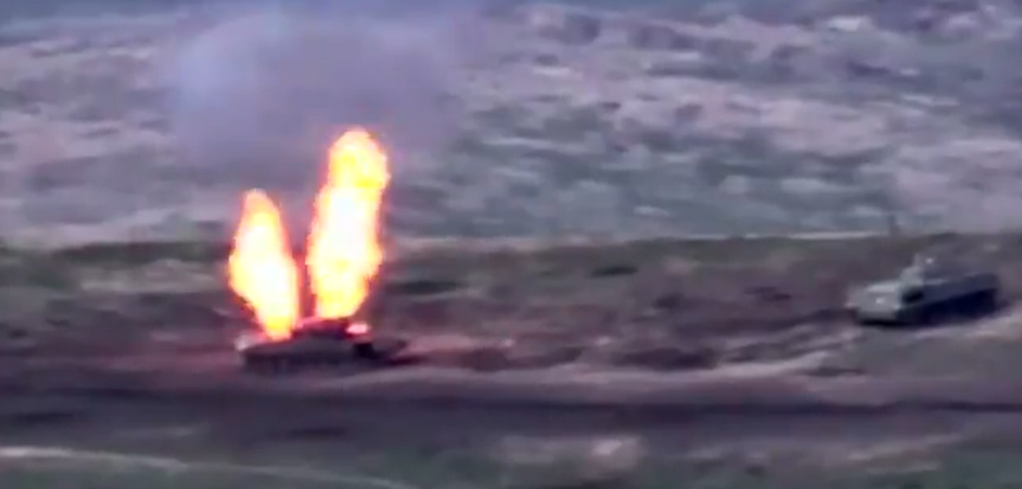Σε βίντεο που δόθηκε στη δημοσιότητα από το Γερεβάν εμφανίζονται δύο αζέρικα άρματα που δέχονται πυρά και υψώνεται πυκνός καπνός, δίπλα σε τρία άλλα άρματα.