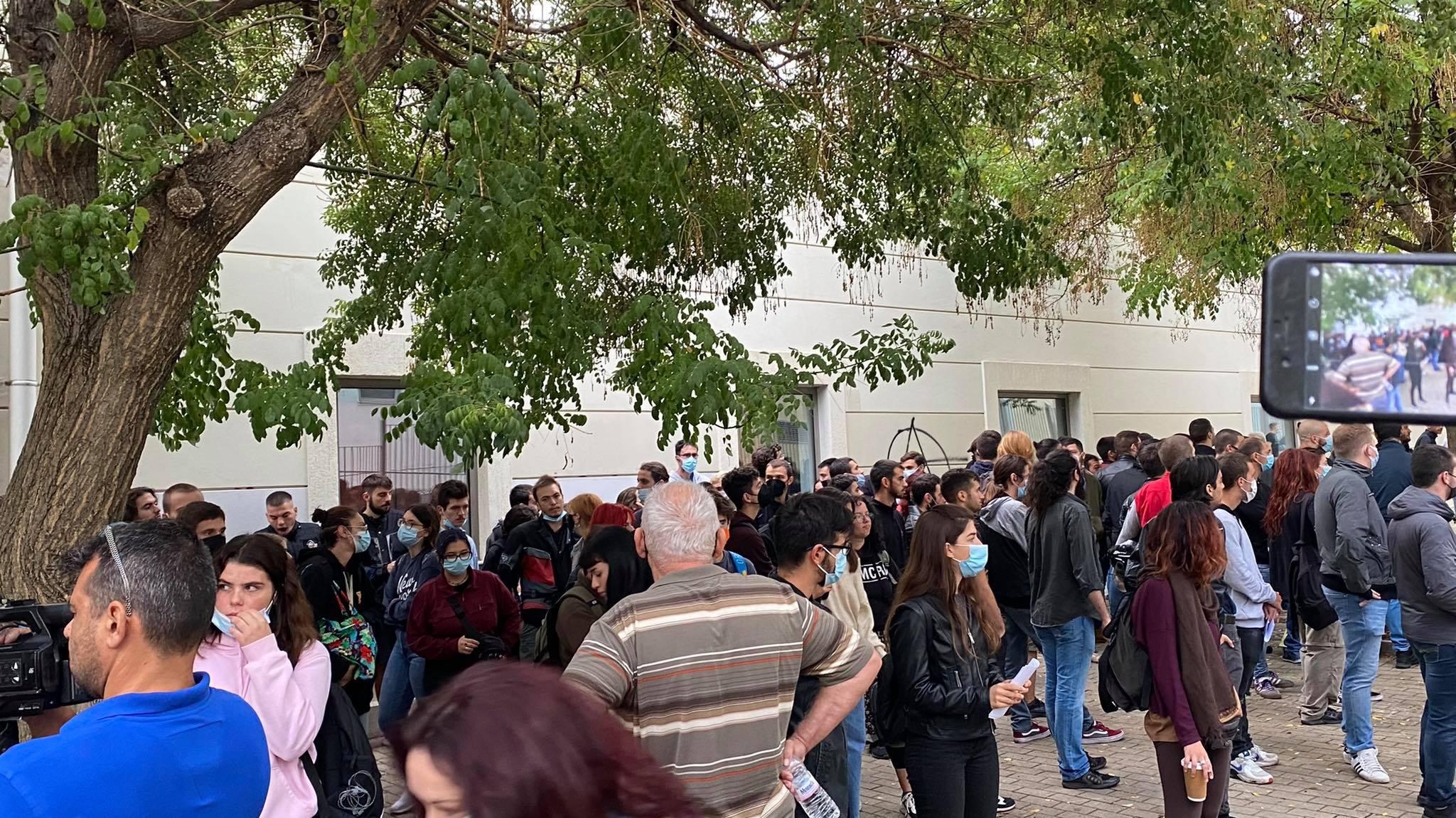 Αυτός ήταν και ο λόγος που δημιουργήθηκε μια μικροένταση μεταξύ των συγκεντρωμένων και των μαθητών που βρίσκονταν στο προαύλιο.