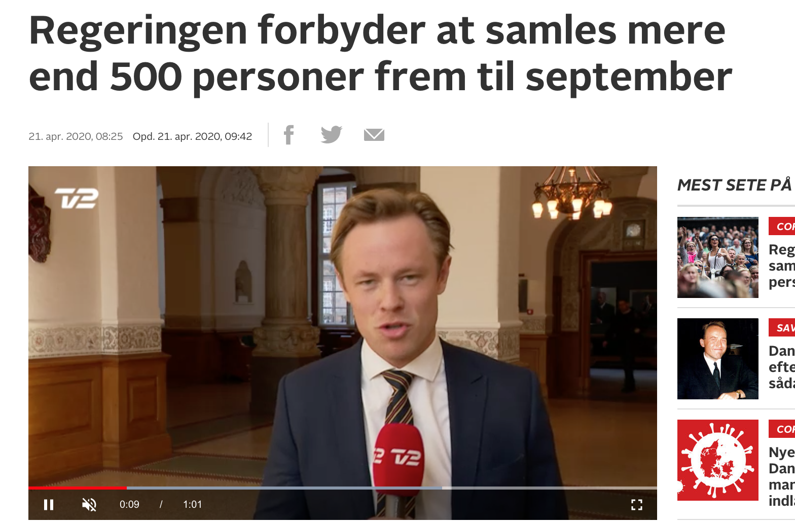 Ο τηλεοπτικός σταθμός TV2 είχε μεταδώσει την πληροφορία ότι η κυβέρνηση θα επέτρεπε μεγαλύτερες συναθροίσεις σε δημόσιους χώρους από τις 10 Μαΐου.