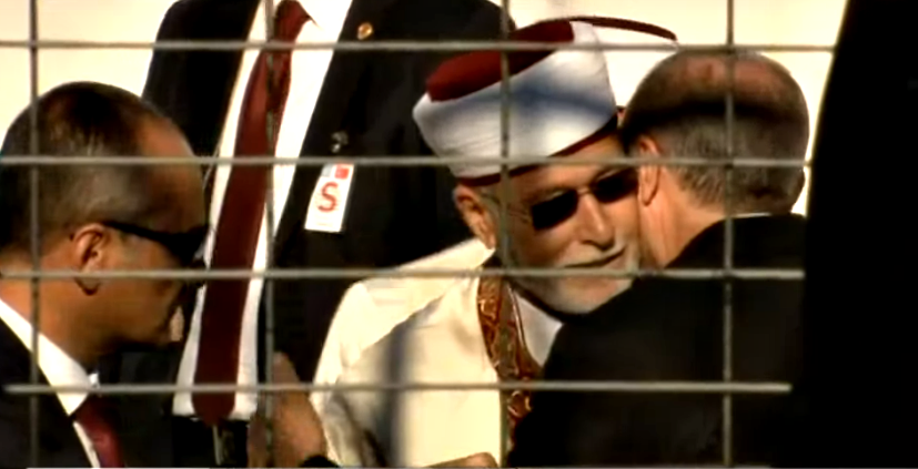 Εκεί τον υποδέχτηκαν αρκετοί μουσουλμάνοι πιστοί -άντρες καθώς δεν επιτρέπεται η παρουσία γυναικών στο τζαμί, με τις γυναίκες να είναι συγκεντρωμένες αρκετά μέτρα μακριά- οι οποίοι φώναζαν ρυθμικά το όνομά του οι οποίοι τον φωτογράφιζαν, δύο ιμάμηδες και οι δύο ψευδομουφτήδες Ξάνθης και Κομοτηνής.