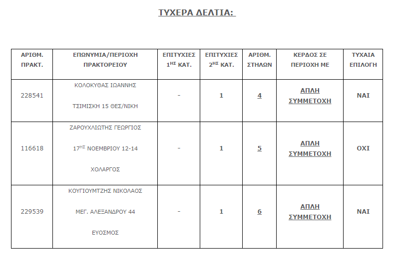 Επίσης στην δεύτερη κατηγορία (5άρια) βρέθηκαν τρεις (3) επιτυχίες . Η κάθε επιτυχία κερδίζει το ποσό των € 20.114,60.