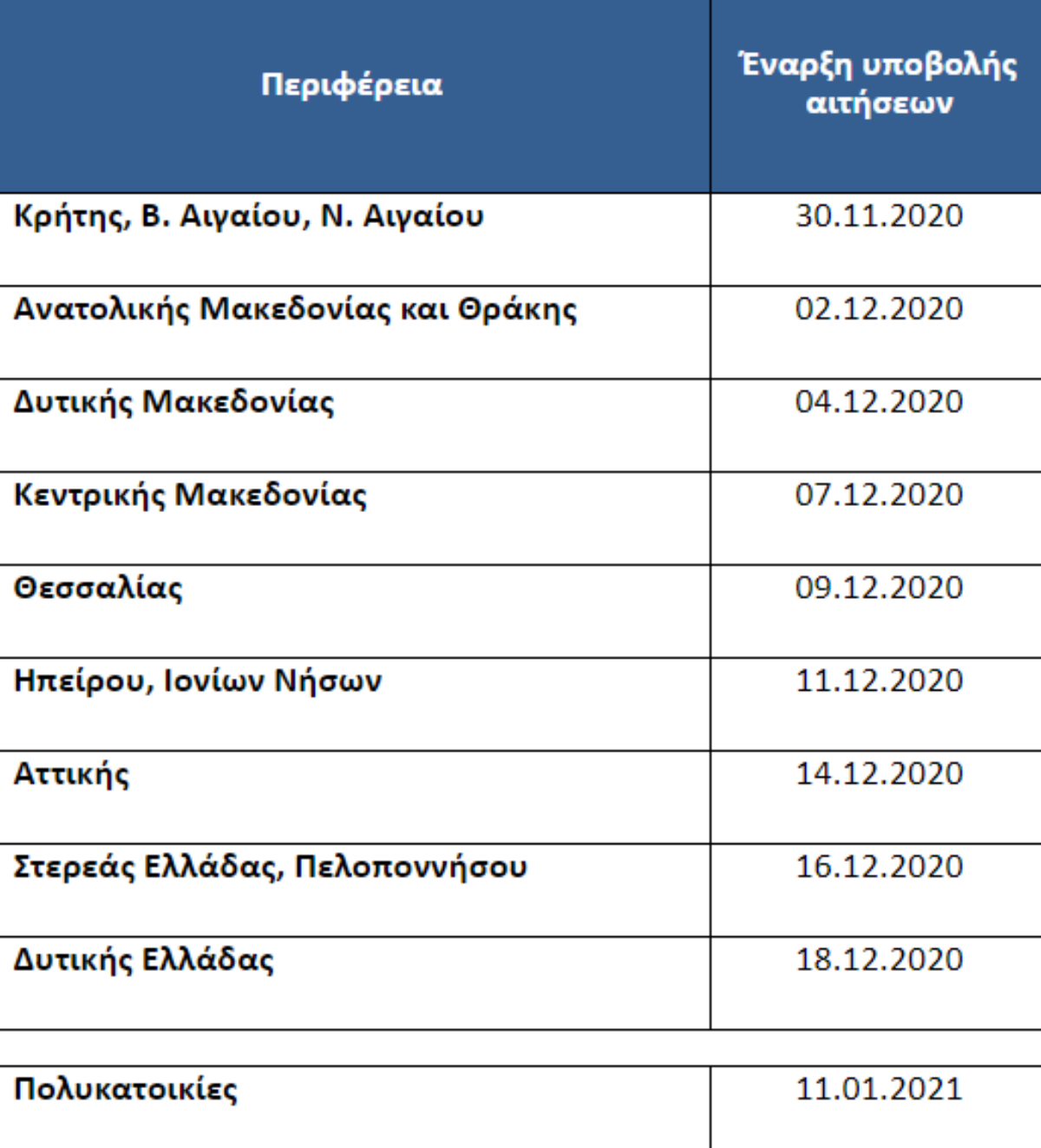 Στην τελική ευθεία εισέρχεται το πρόγραμμα «Εξοικονομώ-Αυτονομώ», το οποίο θα ξεκινήσει επίσημα στις 30 Νοεμβρίου, σύμφωνα με το ακόλουθο χρονοδιάγραμμα υποβολής αιτήσεων ανά Περιφέρεια: