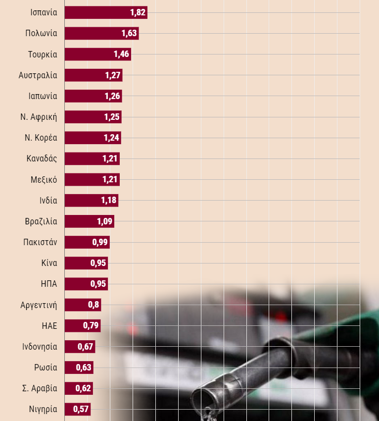 Στις δέκα χώρες με την ακριβότερη βενζίνη στον κόσμο η Ελλάδα