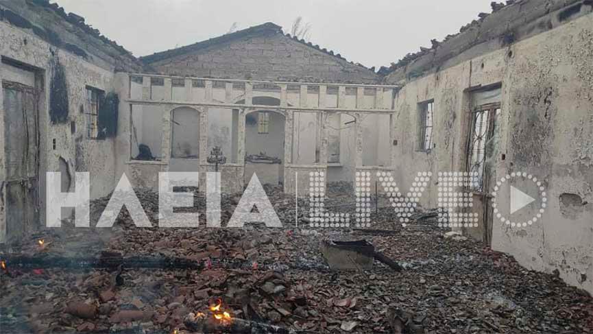 Στις φλόγες παραδόθηκε ο Ιερός Ναός του Προφήτη Ηλία στον Πλάτανο Αρχ. Ολυμπίας, όπου καταστράφηκε ολοσχερώς.