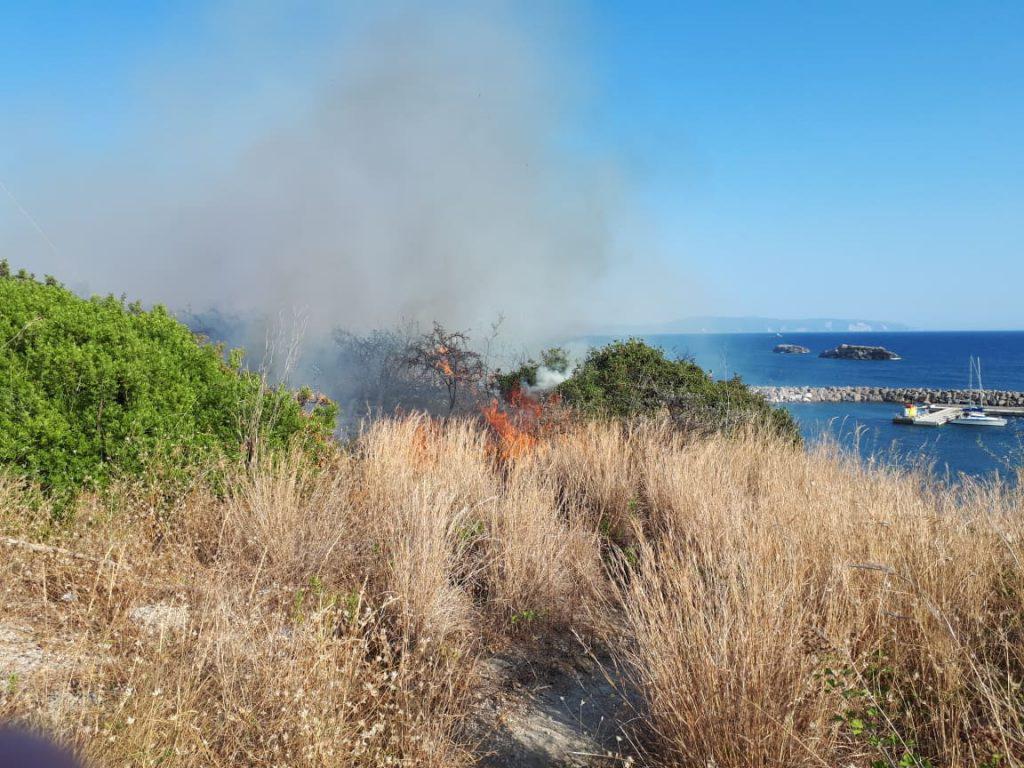Από τη φωτιά που εκδηλώθηκε από άγνωστη αιτία δεν κινδυνεύει κατοικημένη περιοχή ή το αεροδρόμιο του νησιού.
