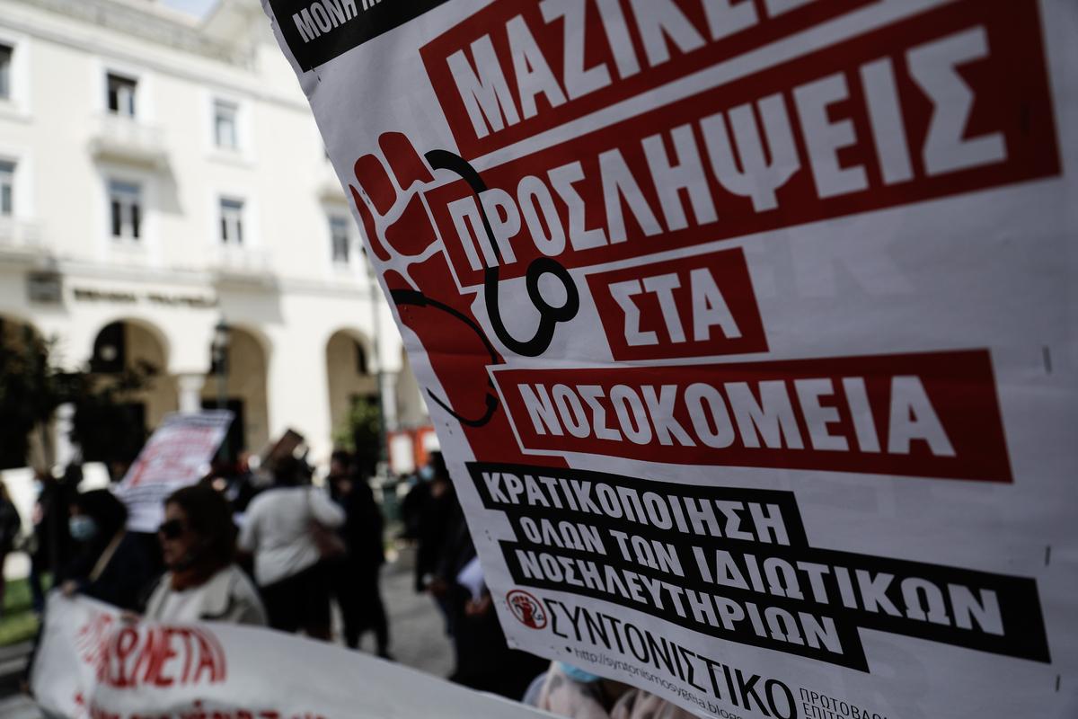 Κατά την κ. Κατσίμπα, το έλλειμμα των γιατρών στα νοσοκομεία της Θεσσαλονίκης αγγίζει περίπου το 30% και στο νοσηλευτικό προσωπικό πλησιάζει το 40%. «Χρειαζόμαστε γιατρούς και νοσηλευτές. Υπάρχουν πολλές οργανικές θέσεις κενές και δεν έχουμε ειδικευόμενους», τονίζει και σημειώνει ότι η πολιτική της κυβέρνησης αποσκοπεί καθαρά στην ενίσχυση του ιδιωτικού τομέα. Επίσης αναφέρει ότι τα κενά καλύπτονται από μετακινήσεις από τα Κέντρα Υγείας, σε βάρος της πρωτοβάθμιας υγείας, ενώ ακόμα και τακτικά χειρουργεία δεν γίνονται, με αποτέλεσμα την αύξηση της θνητότητας. Επίσης αναφέρει ότι σε δημόσια νοσοκομεία, υπάρχουν ημέρες, που ένας γιατρός και μία νοσηλεύτρια καλούνται στη βάρδια τους να παρακολουθούν 30-35 ασθενείς.