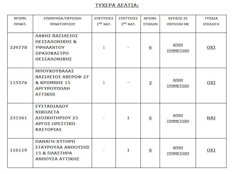 Δύο τυχερά δελτία βρέθηκαν στην 1η κατηγορία.