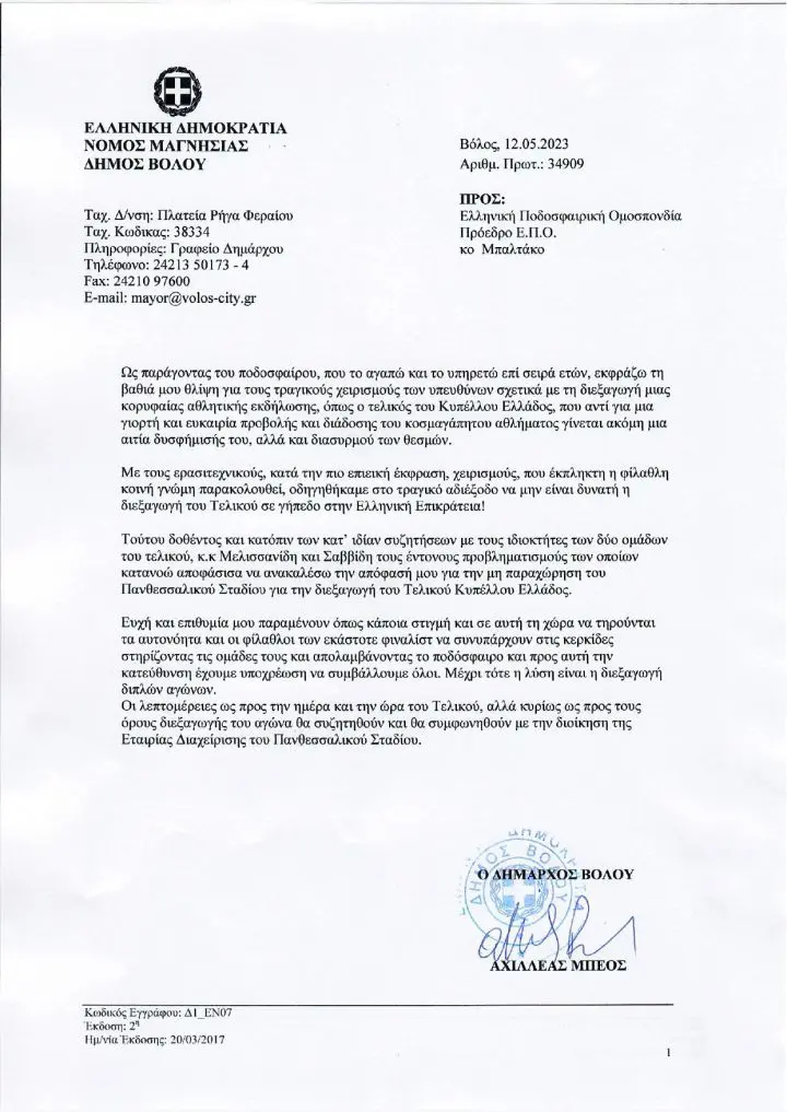 Αυτό άλλωστε ξεκαθάρισε μέσω επιστολής του στην ΕΠΟ, ο Αχιλλέας Μπέος και η επιτροπή διαχείρισης του Πανθεσσαλικού.
