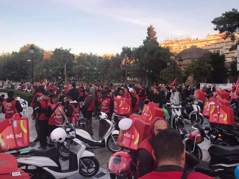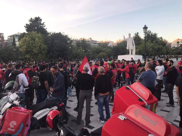 Απεργιακό αλλά και πανηγυρικό χαρακτήρα, έχει η κινητοποίηση των διανομέων της e-food, που ξεκίνησε από το πρωί στο Άγαλμα Βενιζέλου.