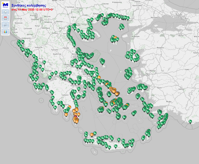 Ιδανικές για κολύμβηση θα είναι οι συνθήκες στις περισσότερες παραλίες της χώρας αφού οι άνεμοι θα είναι εξασθενημένοι. Μπορείτε να συμβουλεύεστε την ενότητα «Χάρτης Παραλιών» για να πληροφορείστε για τις συνθήκες κολύμβησης στις Ελληνικές παραλίες. Στο σχετικό χάρτη παρουσιάζονται οι συνθήκες κολύμβησης που αναμένονται το μεσημέρι της Κυριακής 17/05.