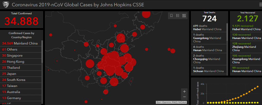 Ο απολογισμός των νεκρών από την επιδημία πνευμονίας που προκαλεί ο νέος κοροναϊός ανέρχεται σε 724, σύμφωνα με τα τελευταία στοιχεία που αναγράφονται σε επίσημο πίνακα.
