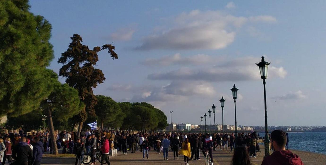 Συγκέντρωση διαμαρτυρίας κατά των περιοριστικών μέτρων πραγματοποιείται αυτή την ώρα μπροστά από τον Λευκό Πύργο.