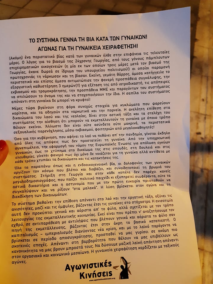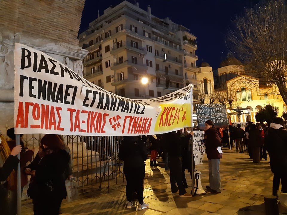 Μεγάλη συγκέντρωση πραγματοποιείται αυτή τη στιγμή στην Θεσσαλονίκη με αφορμή τον βιασμό της 24χρονης Γεωργίας αλλά και όλες τις γυναικοκτονίες που έγιναν γνωστές τους προηγούμενους μήνες.