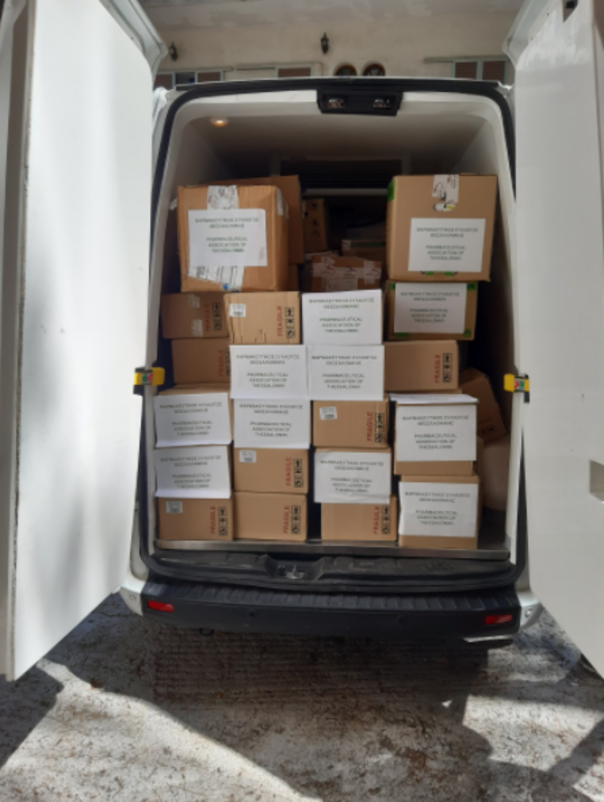 Πιο συγκεκριμένα, ο Φαρμακευτικός Σύλλογος Θεσσαλονίκης, σε συνεργασία με τον Συνεταιρισμό Φαρμακοποιών (ΣΥΦΑ) Θεσσαλονίκης, οργάνωσαν, συγκέντρωσαν, συσκεύασαν και παρέδωσαν ένα φορτηγάκι με φάρμακα, αντισηπτικά, γάζες και μάσκες, στον δήμαρχο Καλαμαριάς Γιάννη Δαρδαμανέλη, ο οποίος επίσης έχει αναλάβει πρωτοβουλία στήριξης με τρόφιμα του δοκιμαζόμενου λαού της Βηρυτού.
