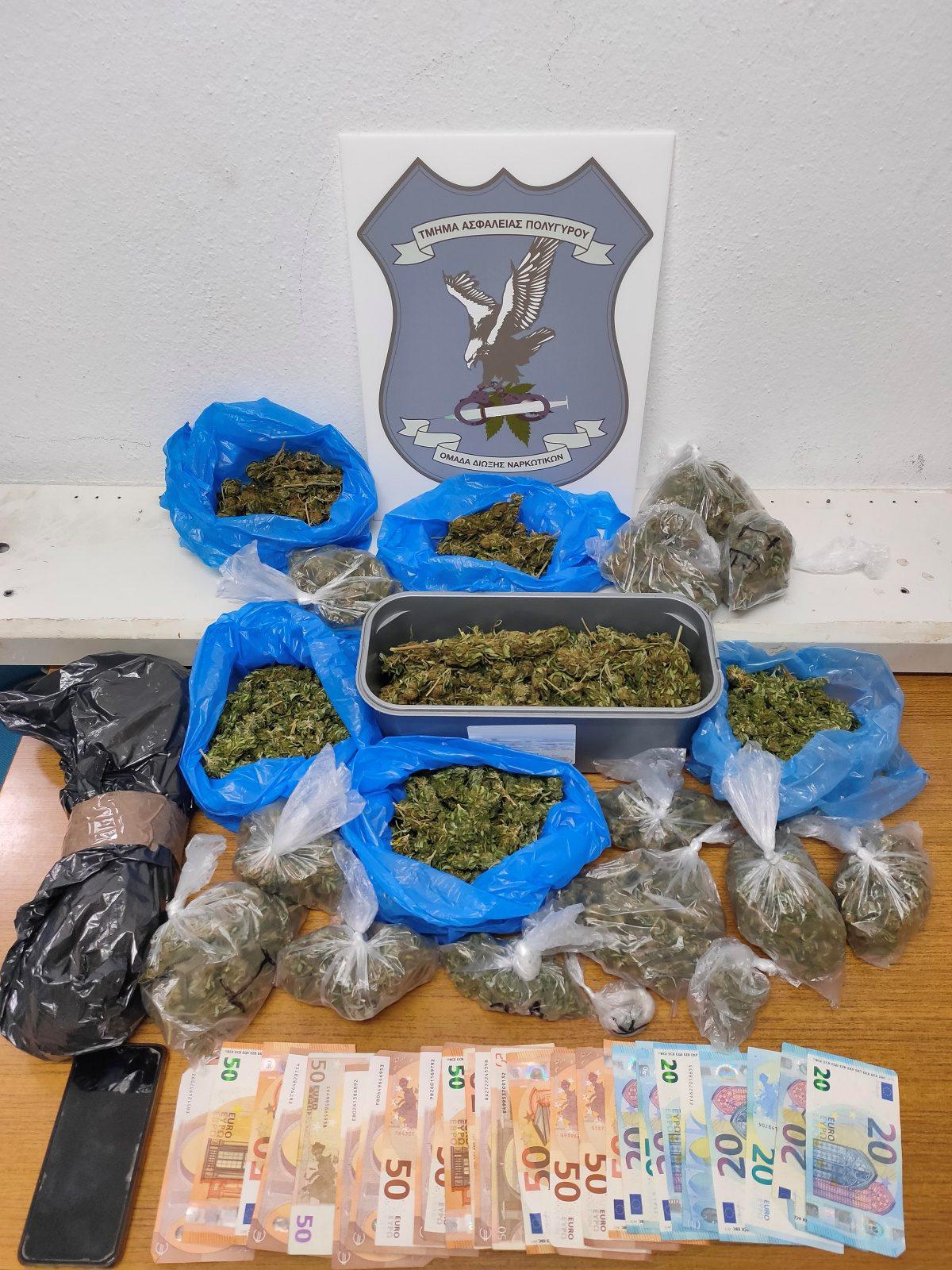 Συνελήφθη χθες (7 Οκτωβρίου 2020) το μεσημέρι, σε περιοχή της Χαλκιδικής από αστυνομικούς της Ομάδας Δίωξης Ναρκωτικών του Τμήματος Ασφάλειας Πολυγύρου ημεδαπός άνδρας, διότι σε έρευνα της οικίας του βρέθηκαν και κατασχέθηκαν 21 συσκευασίες που περιείχαν κάνναβη, συνολικού βάρους 1 κιλού και 283 γραμμαρίων. Επίσης, κατασχέθηκε ένα κινητό τηλέφωνο και το χρηματικό ποσό των 1.080 ευρώ.