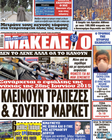 Η εφημερίδα μετέδωσε σήμερα πως κλείνουν τράπεζες και σούπερ μάρκετ λόγω του κορωναϊού, πράγμα που δεν ισχύει και συνεπώς ο Στέφανος Χίος κατηγορείται για ψευδή διασπορά ειδήσεων.