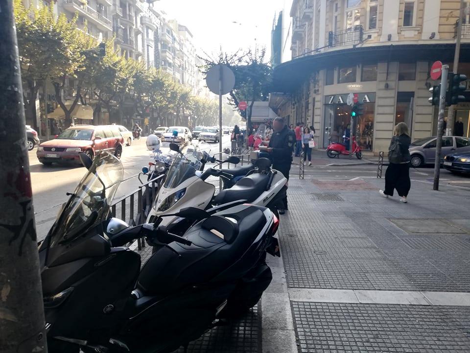 Άνδρες της Τροχαίας βρίσκονται αυτή την ώρα επί της Τσιμισκή, γράφοντας κλήσεις σε δίκυκλα που είναι παρκαρισμένα στα πεζοδρόμια της οδού.