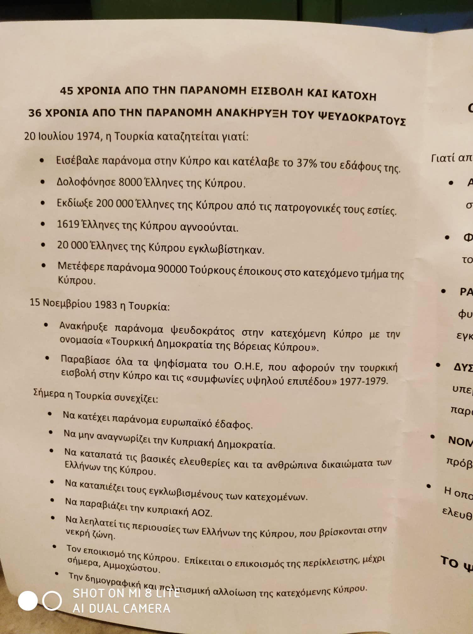 Αυτή την ώρα απέναντι από το τουρκικό προξενείο της Θεσσαλονίκης υπάρχει εκδήλωση διαμαρτυρίας για τα 45 χρόνια από την εισβολή στην Κύπρο.