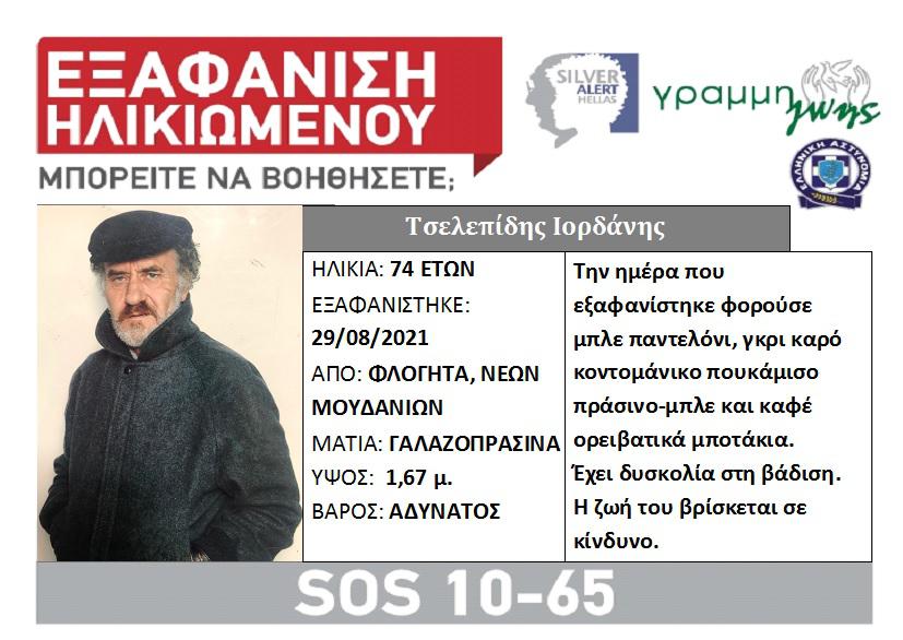 Συναγερμός έχει σημάνει για την εξαφάνιση 74χρονου άνδρα από τα Φλογητά Χαλκιδικής, τα ίχνη του οποίου αγνοούνται από τις 29 Αυγούστου.