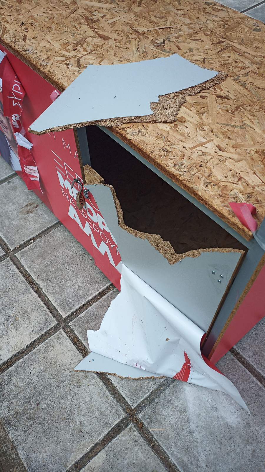 Όπως φαίνεται και στις φωτογραφίες, ομάδα αγνώστων έσπασε σημεία του περιπτέρου, έσκισε αφίσες και κόλλησε εθνικιστικά αυτοκόλλητα. Στελέχη του ΣΥΡΙΖΑ-ΠΣ ενημέρωσαν τις αστυνομικές αρχές, τις οποίες καλούμε να ερευνήσουν το περιστατικό και να εντοπίσουν τους δράστες.