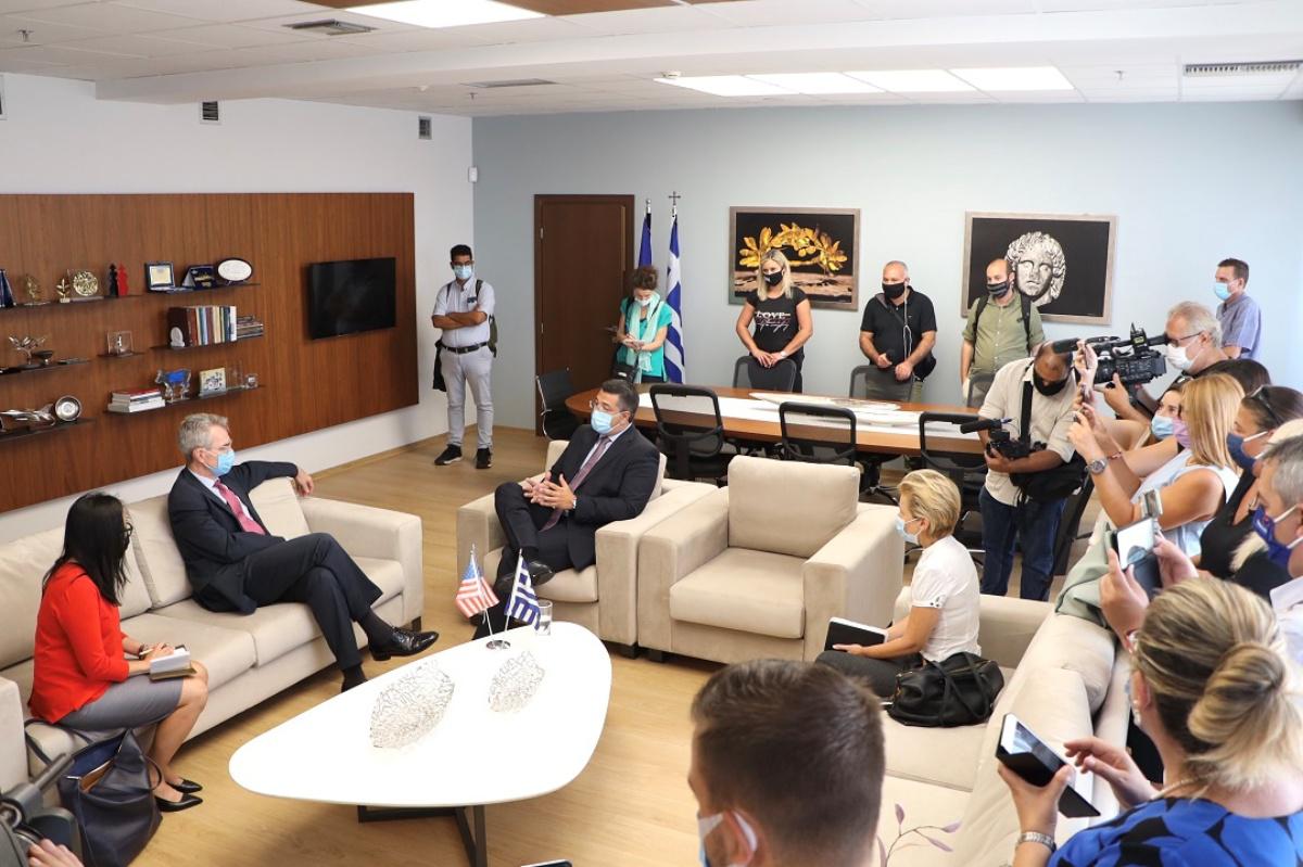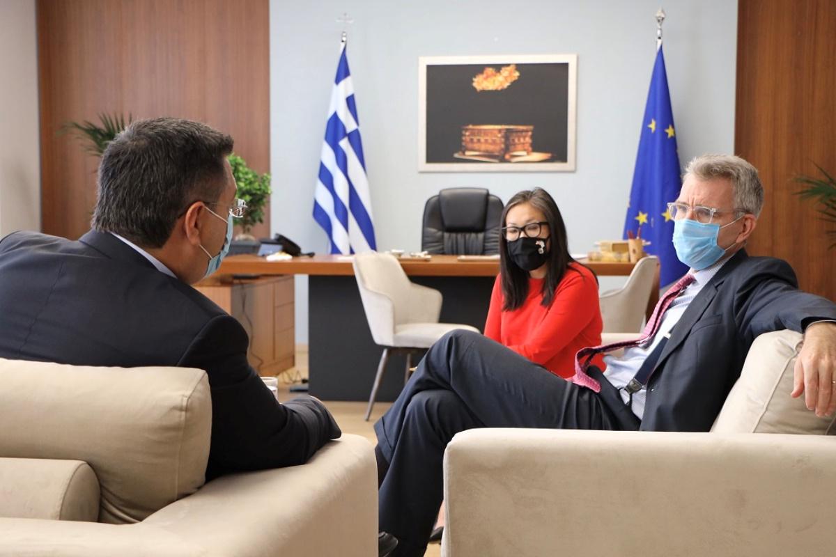Συνάντηση με τον Πρέσβη των ΗΠΑ στην Ελλάδα Geoffrey R. Pyatt και τη νέα Γενική Πρόξενο των ΗΠΑ στη Θεσσαλονίκη Elizabeth K. Lee είχε σήμερα στο νέο κτίριο υπηρεσιών της Περιφέρειας Κεντρικής Μακεδονίας στη δυτική Θεσσαλονίκη ο Περιφερειάρχης Απόστολος Τζιτζικώστας.