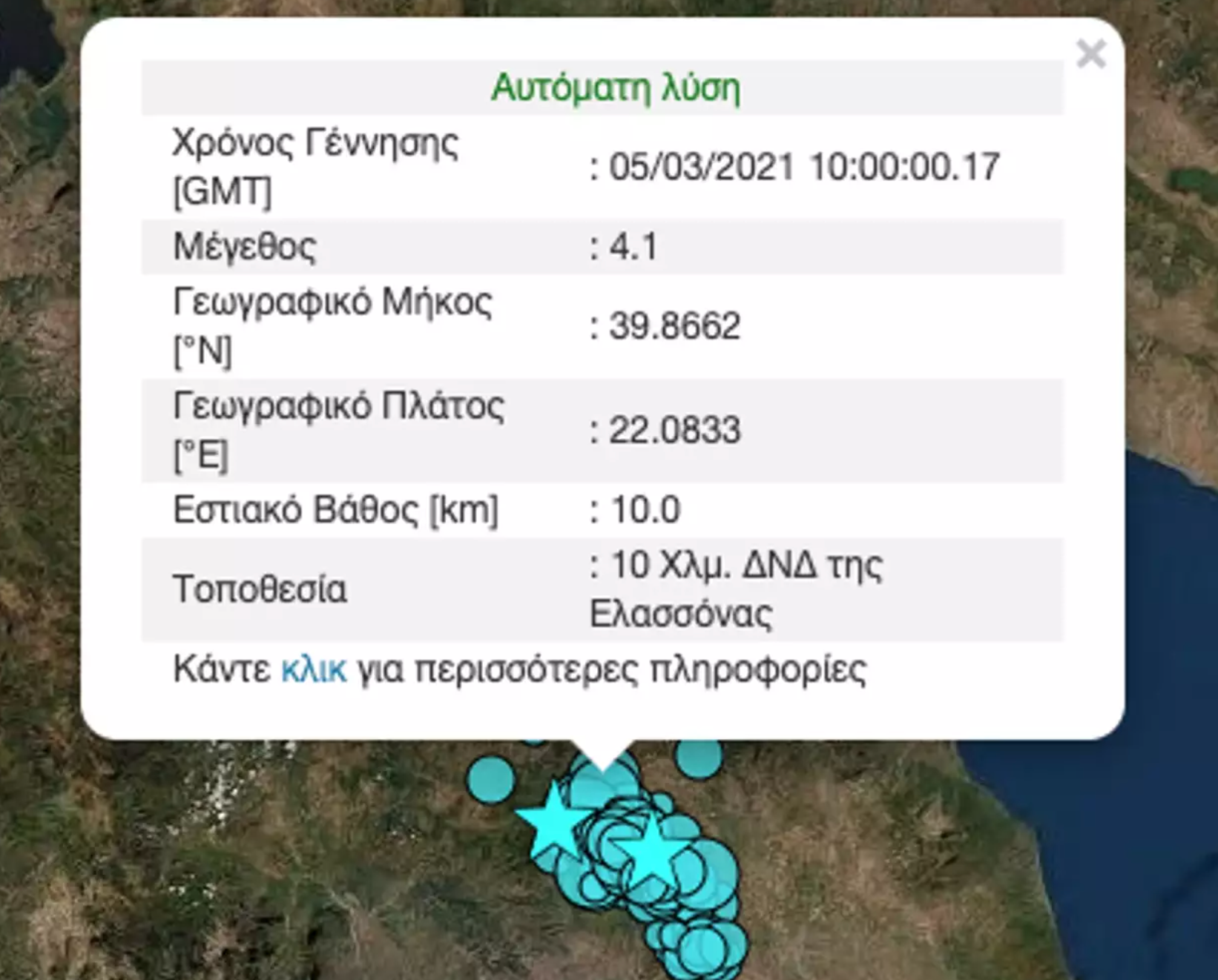 Ένας ισχυρός μετασεισμός έγινε στις 12 το μεσημέρι με επίκεντρο αυτό του μεγάλου σεισμού στην Ελασσόνα.