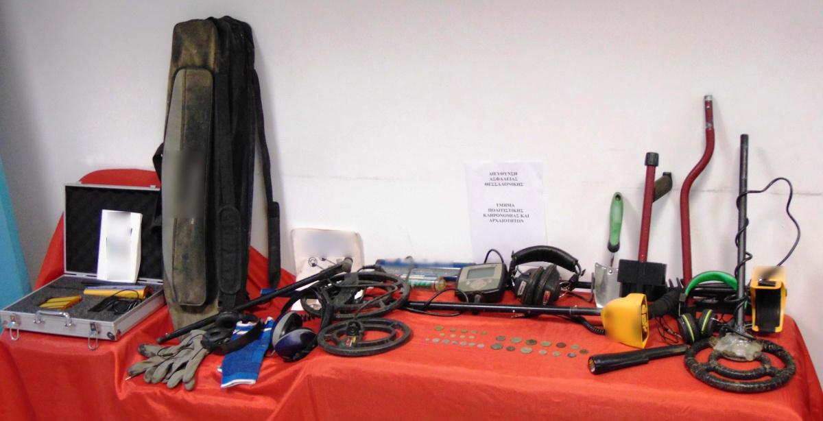 Ειδικότερα, αστυνομικοί της παραπάνω Υπηρεσίας συνέλαβαν χθες (16-07-2020) 51χρονο ημεδαπό σε χωριό των Σερρών καθώς σε έρευνες που πραγματοποίησαν με τη συνδρομή συναδέλφων τους της Υποδιεύθυνσης Ασφάλειας Σερρών, στην οικία του, σε αποθηκευτικό χώρο αλλά και σε αυτοκίνητο που οδηγούσε, ιδιοκτησίας της συζύγου του, βρέθηκαν και κατασχέθηκαν 44 αρχαία νομίσματα, εκ των οποίων τα 29 εμπίπτουν στις προστατευτικές διατάξεις του Νόμου «Για την προστασία των αρχαιοτήτων και εν γένει της πολιτιστικής κληρονομιάς», σύμφωνα με γνωμάτευση αρχαιολόγου της Εφορείας Αρχαιοτήτων Σερρών, καθώς επίσης και 5 ανιχνευτές μετάλλων.