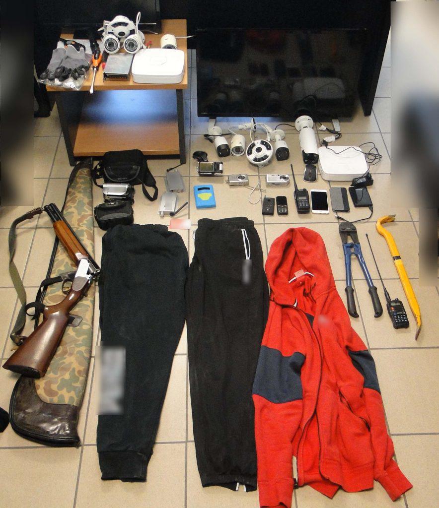 Βρέθηκαν και κατασχέθηκαν: (1) κυνηγετική καραμπίνα, (1) ηλεκτρικός εκκενωτής (τέιζερ), (1) συσκευή εντοπισμού (gps), (1) ασύρματος που ήταν συντονισμένος στα κανάλια της Αστυνομίας, Πλήθος κινητών τηλεφώνων και Ενδύματα που φορούσαν κατά την τέλεση των πράξεων.