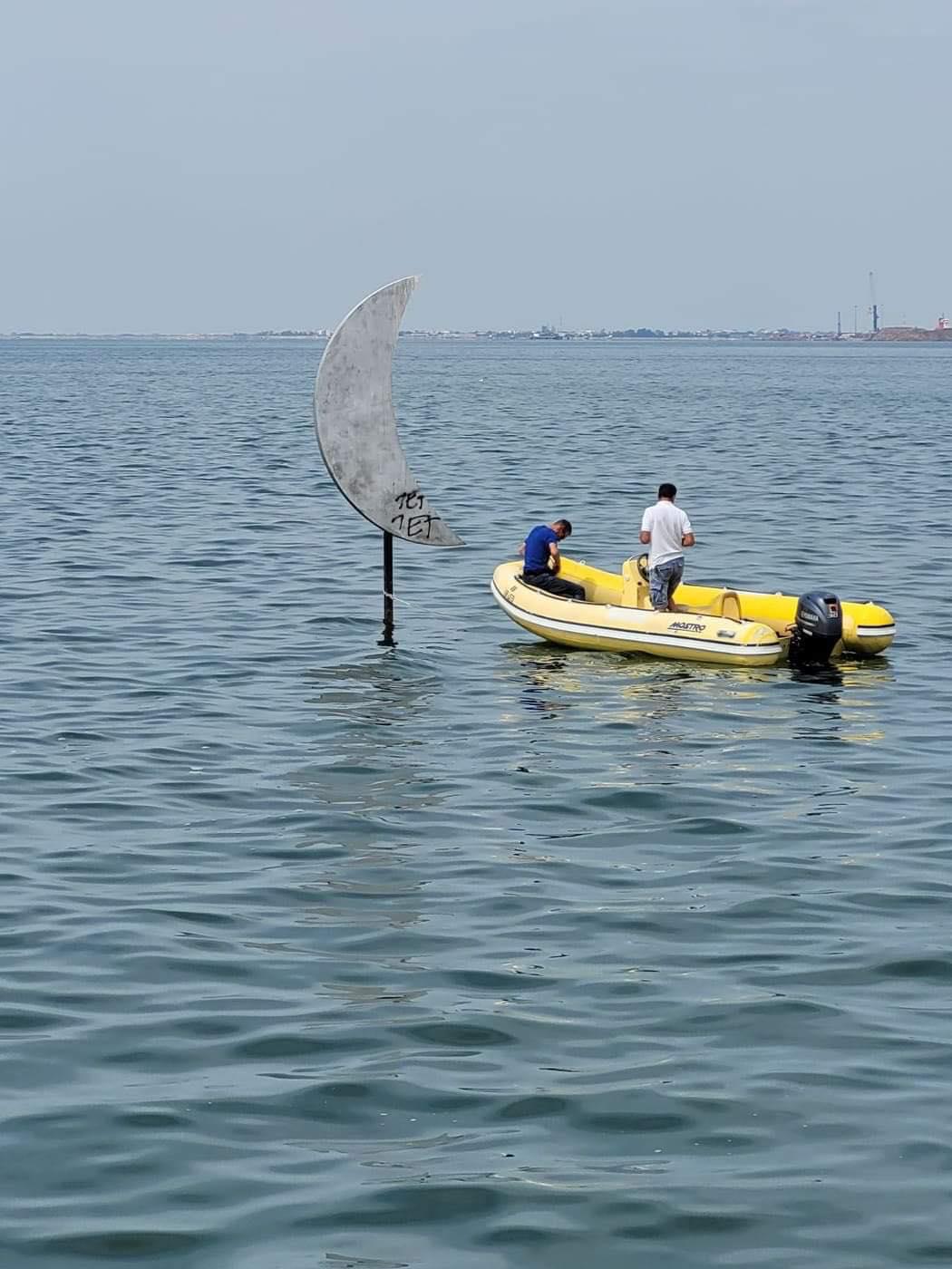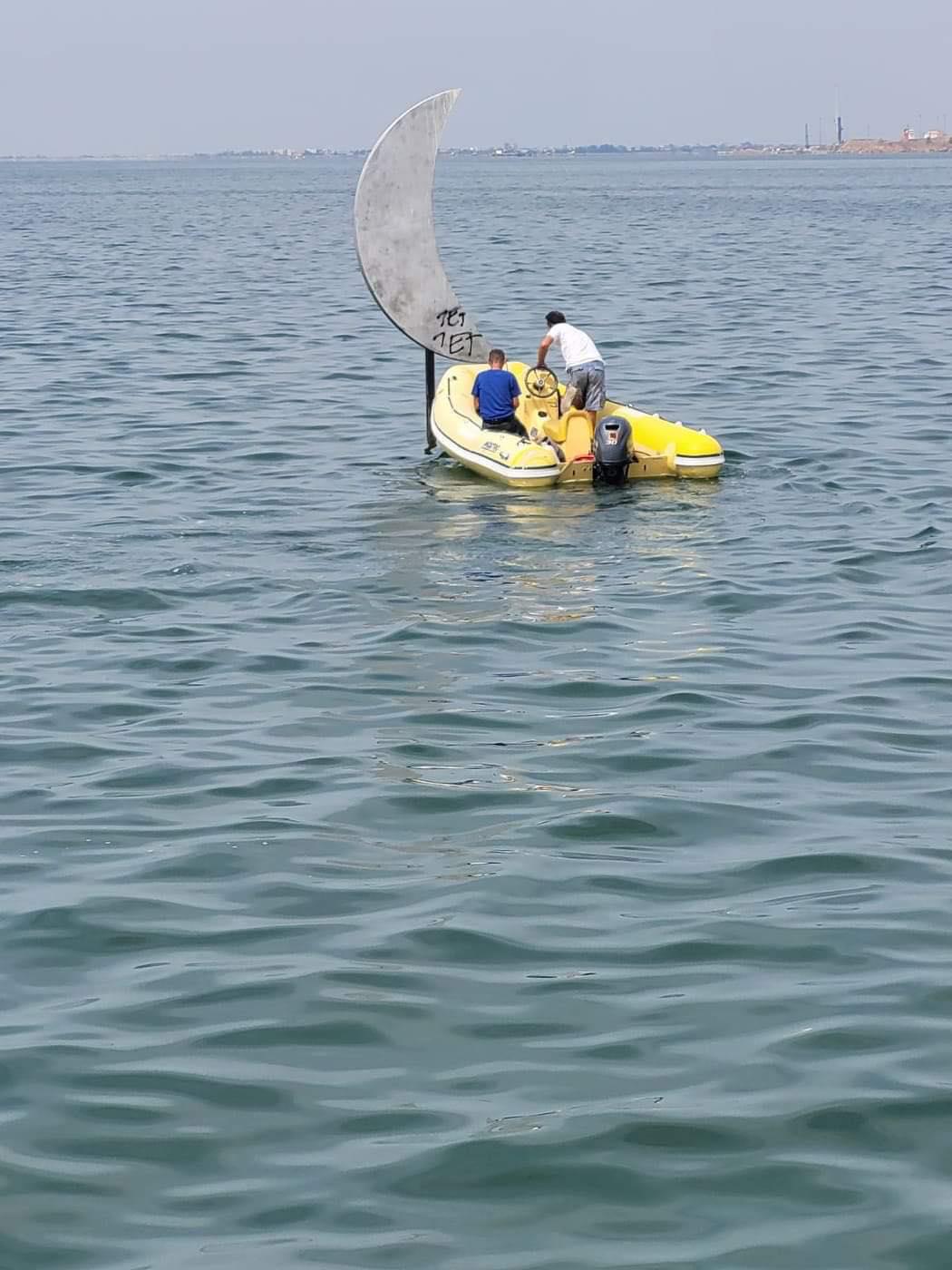 Συνεργεία του δήμου καθάρισαν το γλυπτό «Φεγγαράκι», που βανδαλίστηκε μέσα στο νερό