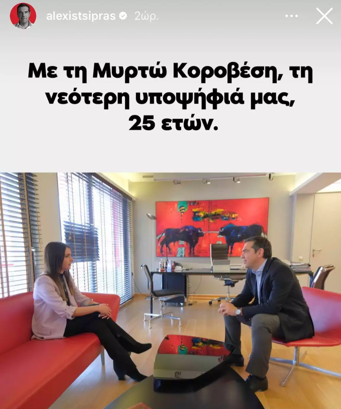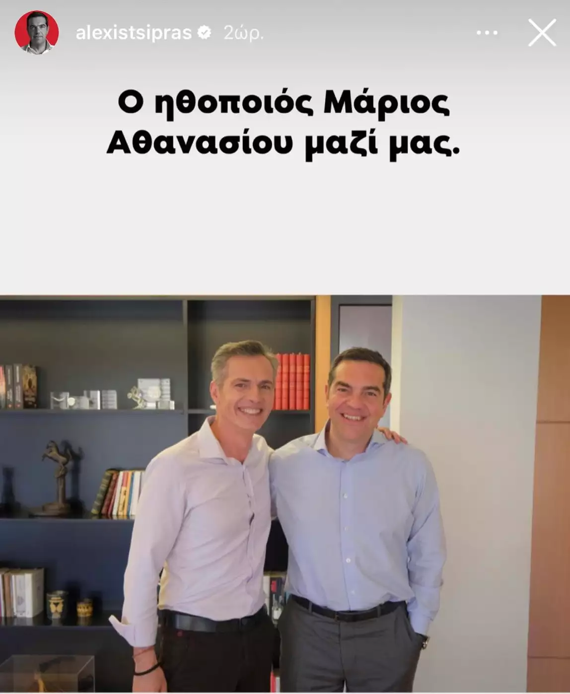 Την ένταξη του ηθοποιού Μάριου Αθανασίου και της νεότερης υποψήφιας -μόλις 25 χρόνων- Μυρτώς Κοροβέση, στα ψηφοδέλτια του ΣΥΡΙΖΑ- Προοδευτική Συμμαχία για τις εκλογές της 21ης Μαΐου 2023, καλωσόρισε ο Αλέξης Τσίπρας, με αναρτήσεις του στο Instagram.